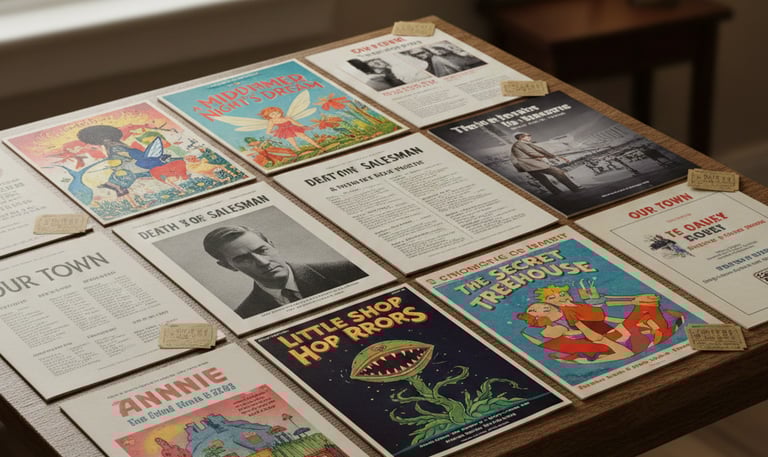 Our Town Players has a rich history of bringing memorable theatrical experiences to Southwest Michigan. Over the years, we've showcased a diverse range of productions, from beloved classics to contemporary comedies, always selecting shows that resonate with our community and provide meaningful opportunities for our talented performers. Each production reflects our commitment to quality storytelling and creative excellence, and we're proud of the countless moments of magic we've created on stage.